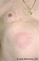 Lyme disease is caused when an Ixodes tick passes on the germ known as “Borrelia burgdorferi,” while sucking blood from its victim. Most people who get Lyme disease will show a rounded red rash at the place the tick bit them within a month. Some never develop a rash, while others develop multiple spots. The rash is called erythema migrans (formerly erythema chronicum migrans). The rash may be solid red, form a ring or multiple rings called a “bulls-eye” appearance. The rash is commonly about four inches across when seen, but often covers large areas of the body. Usually, bites that leave a ring less than 2 inches don’t turn out to be Lyme.