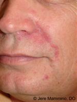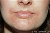 Perioral dermatitis is a facial rash that tends to occur around the mouth. Most often it is red and slightly scaly or bumpy. Any itching or burning is mild. It may spread up around the nose, and occasionally the eyes while avoiding the skin adjacent to the lips. It is more rare in men and children. Perioral dermatitis may come and go for months or years.